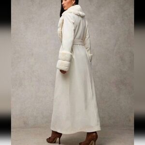 Women's Solid Color Faux Fur Shawl Collar Long Sleeve Long Elegan Coat