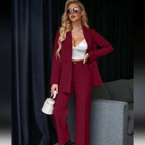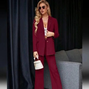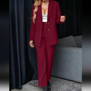 Women's Solid Color Jacket And Pants 2-Piece Suit Set