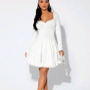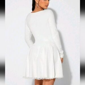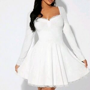 Women's Solid Color Lace Trim Casual Short Long Sleeve Dress