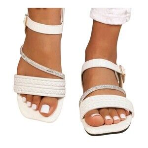 Women's Solid Color Open-Toe Flat Sandals White Size 8