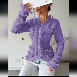 Women's Solid Color Patchwork Fringe Long Sleeve Single-Breasted Cardigan