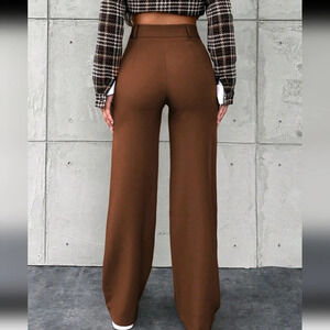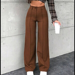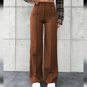 Women's Solid Color Toothpick Striped Design Wide Leg Office Autumn Pants
