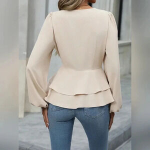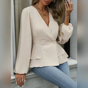 Women's Solid Color V-Neck Double-Breasted Wrap Elegant Long Sleeve