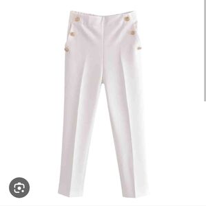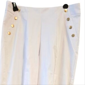 Zach and Rachel Womens Solid Flat Front Pant Ankle-Length Elastic Waist Pant Metal Button Decor Tapered Pants White
