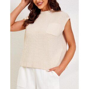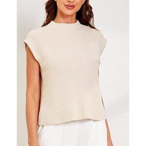 Women's Solid Sleeveless Vest Mock Neck Cap Sleeve Knitwear Sweater Tops