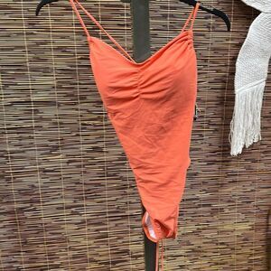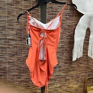 Womens Solid Tie Belt One-Piece Swimsuit