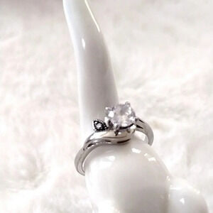 Beautiful Sparkling Solitaire Clear CZ Ring set in Silver Hypoallergenic Stainless Steel, Size 10. Leaf Accent on Side, Stunning in Person. Very Durable High Quality Ring that Won't Turn Your Finger Green!