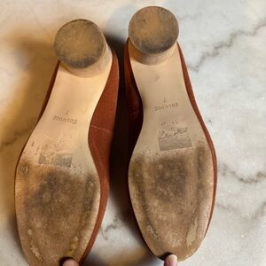 Stacked column heel with round toe and timeless Sienna colored suede. Can be dressed up or down. Gently worn. Step out in style with these elegant suede block heel shoes. Perfect for any occasion, these shoes offer both comfort and sophistication.