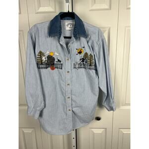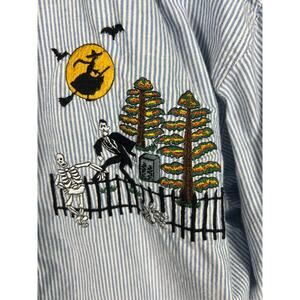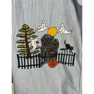 Womens Solutions Medium Striped Halloween Haunted House Embroidered Blouse Top