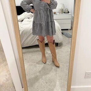 Step out in style whether it’s for line dancing or brunch with these Sommer Western Boots from Universal Thread™. Complete with a smart 1.5in western heel and a classic pointed-toe front, they feature a knee height and flocked outsole for on-trend style. A side half zipper and pull loops make for easy on and off. Simply pair with anything from bootcut jeans to skirts and midi dresses for effortless style.