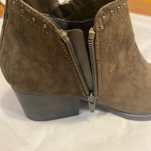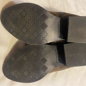 Brown suede like material Somona boots. Size women’s seven medium. Both sides have zippers, but only the one side zips the other side is decoration. In great condition.
