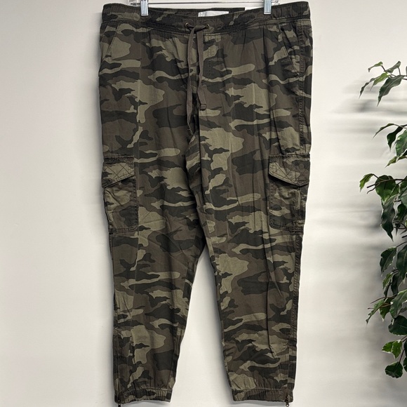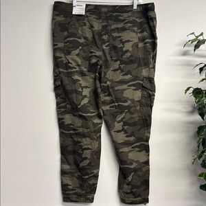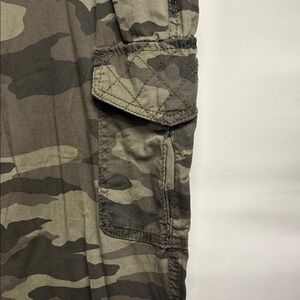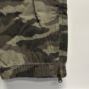 Stylish cargo pants with a classic camo pattern. Ideal for casual wear. Features multiple pockets for convenience. Drawstring waist. Zippered ankles