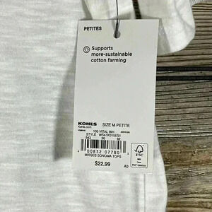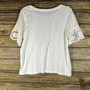 Women's Sonoma Eyelet Lace Trimmed Short Flutter Sleeve Crewneck Size PM White. New with tags. Crewneck. Elbow sleeves. Fluttery eyelet detailing. Pullover styling.
