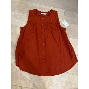 Women's Sonoma Goods for Life Button-Front Ruffle Tank Medium Dark Orange NEW