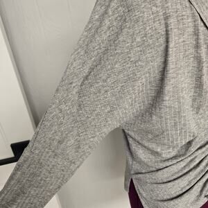 Excellent condition, women's Sophie Rue gray v-neck knit top with a cinch tie back. This top has side slits at the bottom. This material stretches.