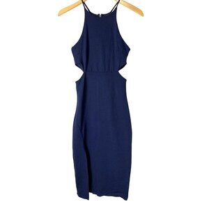 Womens Soprano Navy Midi Dress Cutout S Jr Sleeveless Halter Slit 7532 NWOT
