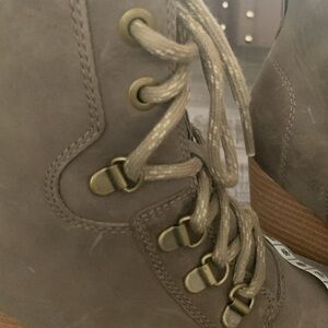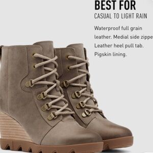 Women's Sorel JOAN UPTOWN LACE Leather Boots Size 8 KHAKI Like New Preloved