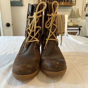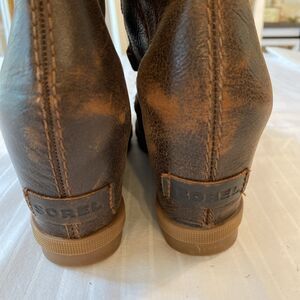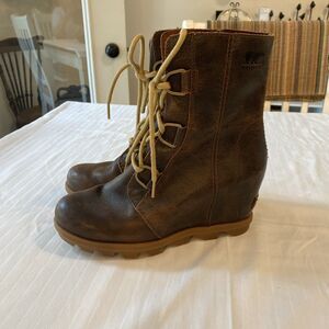 Women’s Sorel Joan Of Arctic Wedge Size 8 Brown Leather Wedge Ankle Boots