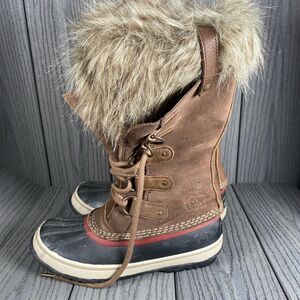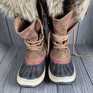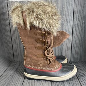 Women’s Sorel Tall Faux Fur Snow Boots Sz 7 Brown Waterproof NL2429-261 Duck