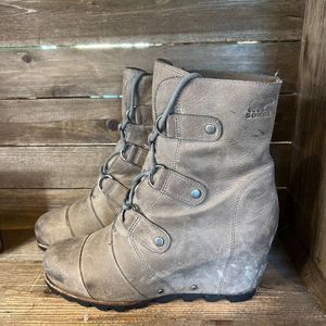 Womens Sorel Joan of Arctic Leather Hidden Wedge Heeled Boots Size 10 M GUC