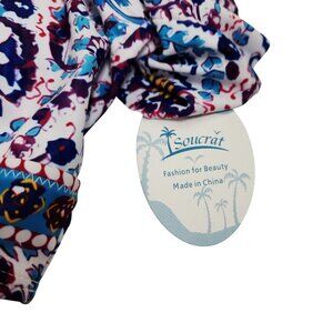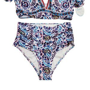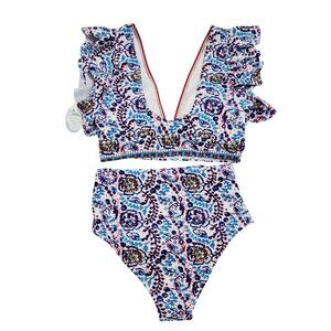 Womens Soucrat Ruffled V-Neck Bikini Set High-Waist Floral Swimsuit S Multicolor