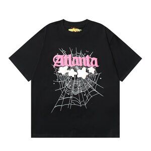 Women's Sp5der Printed Round Neck Short Sleeve Black