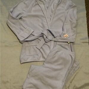 Experience ultimate comfort with this spa soft robe top and pants. Robe top with two pockets and an unremovable belt.