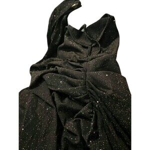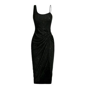 Women's Spaghetti Strap Backless Metallic Glitter Slim Fit Black Dress With Wrinkles, Slit And Bodycon Design Homecoming Size Medium
