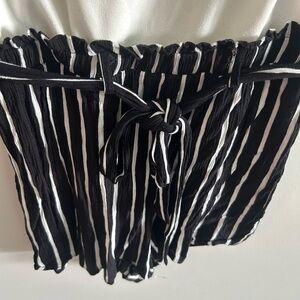 Stylish white and black striped romper with a tie waist. Perfect for casual outings.