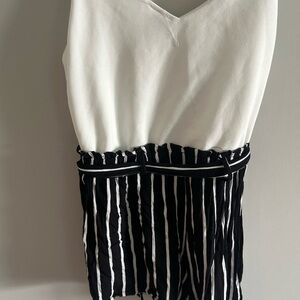 Women’s Spaghetti Strap White Tank and White and Black Striped Romper medium