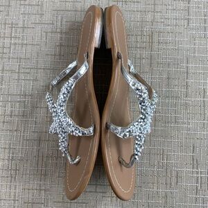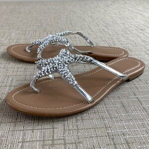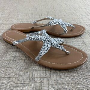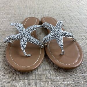 Women’s Sparkly Silver Beachy Rhinestone Starfish Flat Sandals Flip Flops Sz 6