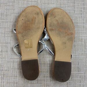 Unbranded sandal flip flops. Man made footbed. Very good preowned condition. Some signs of light wear. Please review photos for verification of condition. Color may vary slightly due to lighting. Comes from a smoke free, pet free home.