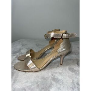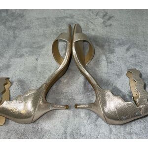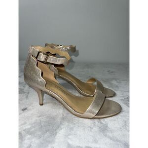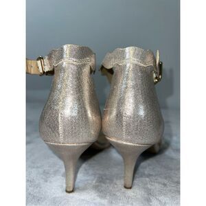 Women’s Sparkly Gold Scalloped Strap Heels 8.5. Nice low heel. Comfy insoles.