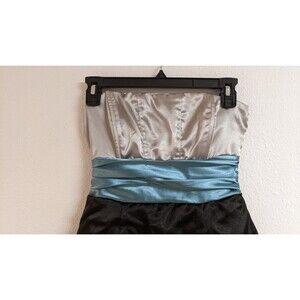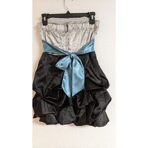 Women's Speechless Black/Silver/Blue Strapless Bubble Hem Dress W/Pick-Ups 3