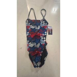 Women's Speedo Printed Double X Back 1Pc Overdrive True Cobalt 38 NWT