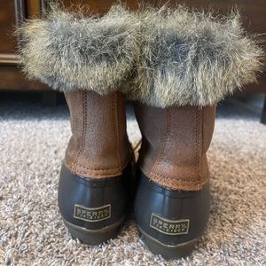 Women’s Sperry fur trimmed snow boots. Size 9. In very good condition as they were only worn once.