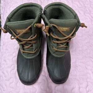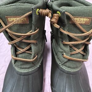 Women's Sperry Saltwater Emboss Wool Duck Boots Green Size 5.5 M