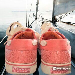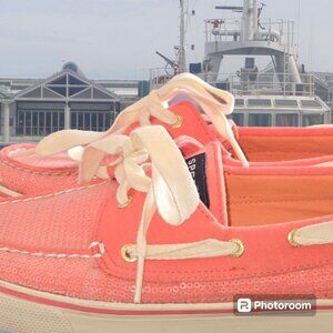 Women's Sperry Top Siders Coral Clear Sequins Size 9M 2 Eye Tie Preowned