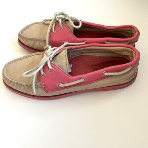 Women's Sperry Top-Sider Pink And Beige Boat Shoes Loafers Size 8.5M
