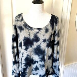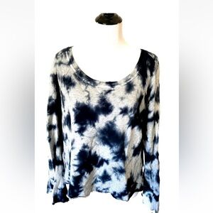 Womens Splendid Sz Small Oversized Sweatshirt Tie Dye Pullover Blue Bell Sleeve
