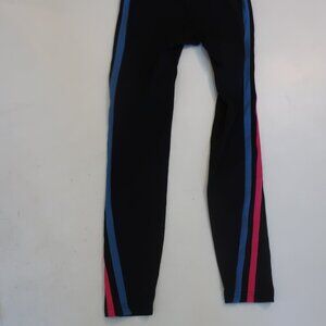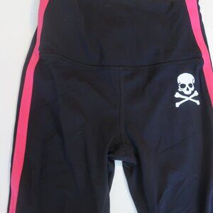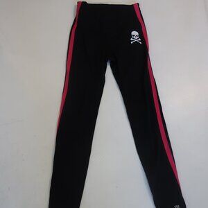Womens Splits 59 Black Skull Leggings W/Pink & Blue Side Stripes 2