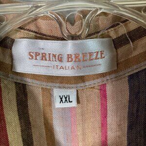 Womens Spring Breeze Striped Linen Blend Button Tunic 3/4 Sleeve 2XL
