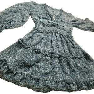 Womens Spring Summer Deep V Neck Ruffle Long Sleeve Floral Print Mini Dress Sz S. This beautiful dress I brought it for myself and never worn its new without tag super comfortable and cute perfect to go out with friends or go dinner it got a super cut in the back close by key hole buttons on the top.