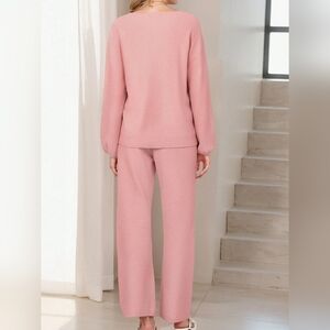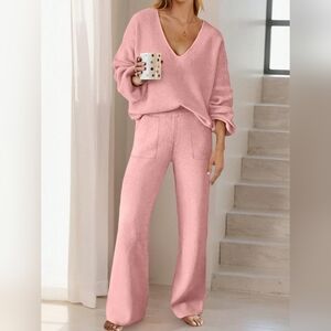 Women's Spring/Autumn Casual Solid Color Drop Shoulder Sweater And Pants