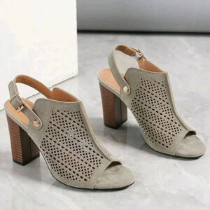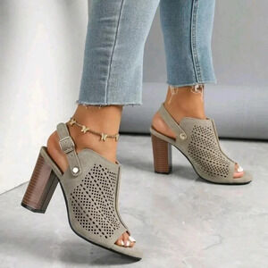 Women's Spring/Summer New Imitation Suede Heeled Sandals With Exposed Heel & Pee