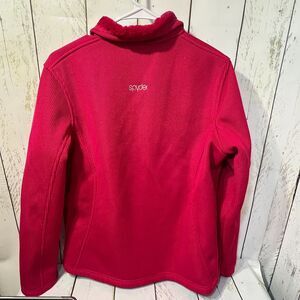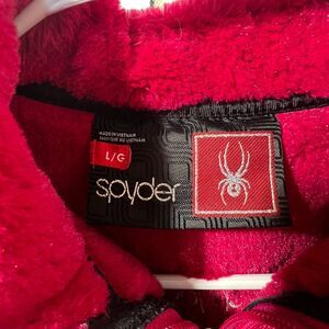Spyder logo on chest and back. Some light pilling see close up photo. Zipper pockets