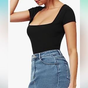 Women's Square Neck Bodysuit Short Sleeve Shirt Tops