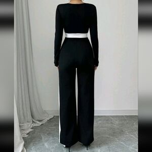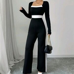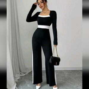 Women's Square Neck Color Blocking Elegant Long Sleeve Jumpsuit