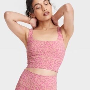 Women's Square Neck Cropped Support Tank Top - JoyLab pink leopard new 🆕