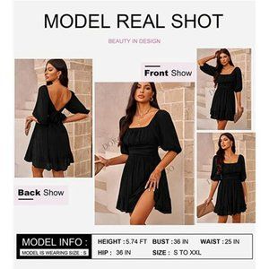 🧿Feature: summer dresses for women 2023/mini dress/sexy dresses/Off The Shoulder Dresses /square neck dress/Tie Backless/Shirred Elastic Waist/lantern sleeve/Regular Thickness/Suitable For Most Body Shape/Above Knee Length/Because the fabric is softer,The dress may be a little wrinkled, please hang them up for a